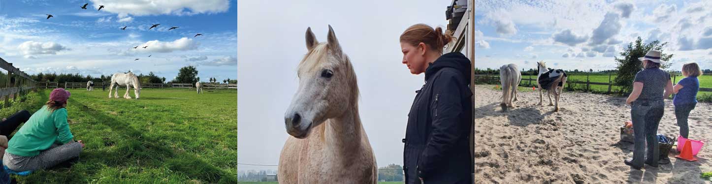 Hoewel we een uitgebreid online portaal hebben, geloven wij in persoonlijk contact van mens tot mens en paard. Want échte groei ontstaat in verbinding. Medestudenten, de vaste docenten en de paarden vormen met elkaar een emotioneel veilige holding waarin je je vrij kunt ontwikkelen. Als mens én als facilitator.