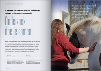 Pegasus, equine assisted therapy for therapy resistant adolescents with autism spectrum disorders, a multiple baseline AB study (vanaf 2021). Kinder- en jeugdpsychiater Jenny den Boer onderzoekt de effectiviteit van coach- en therapiesessies met paarden volgens de methodiek van equine assisted coaching.